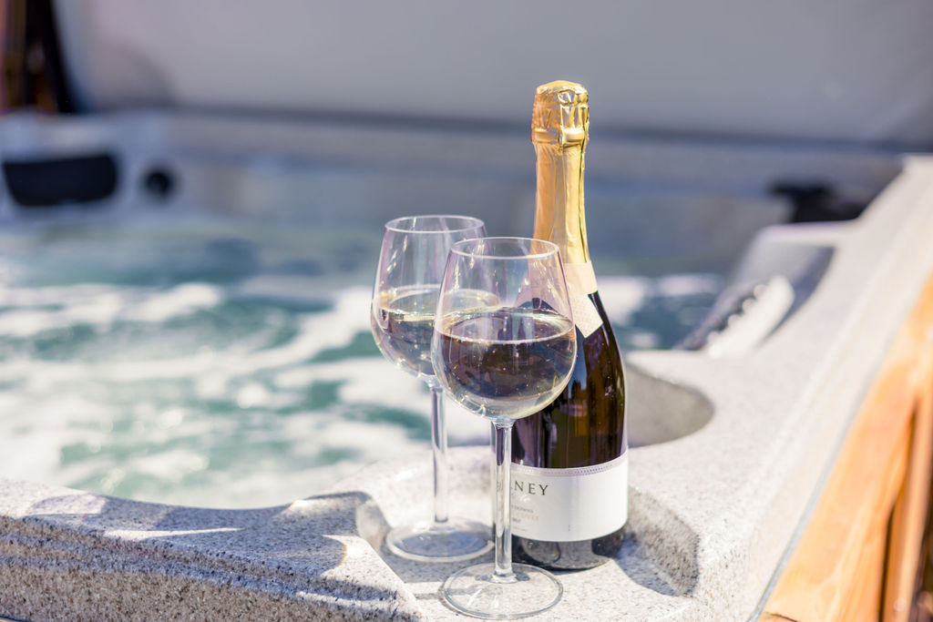 No glass should be taken into hot tubs for safety reasons. Please follow the guidance in your guest information pack for the safety and care of the hot tub area.